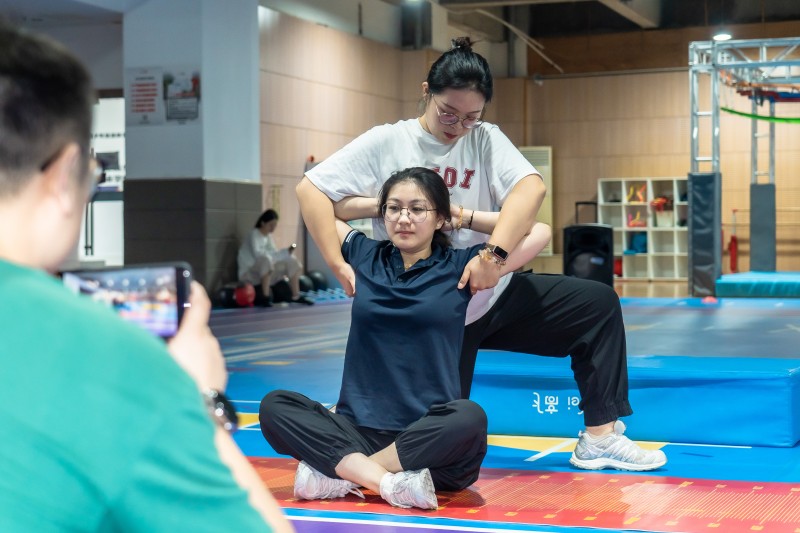 会上,市少体校医务室康复师徐泽媛就第二、三季度训科医服一体化工作进行了汇报。今年暑期集训期间,市体科所训科医服工作人员分批次对市少体校各运动队进行了运动能力测试、功能性评估、损伤风险筛查和体能训练指导,并与教练员现场深入交流。过程中发现,部分运动员因训前热身不充分、训后拉伸不到位,出现肩、髋、踝关节灵活性不足,以及核心肌群稳定性较弱等问题,此类情况不仅可能限制运动能力提升,更会增加运动损伤风险,成为当前训科医服一体化工作需重点突破的方向。