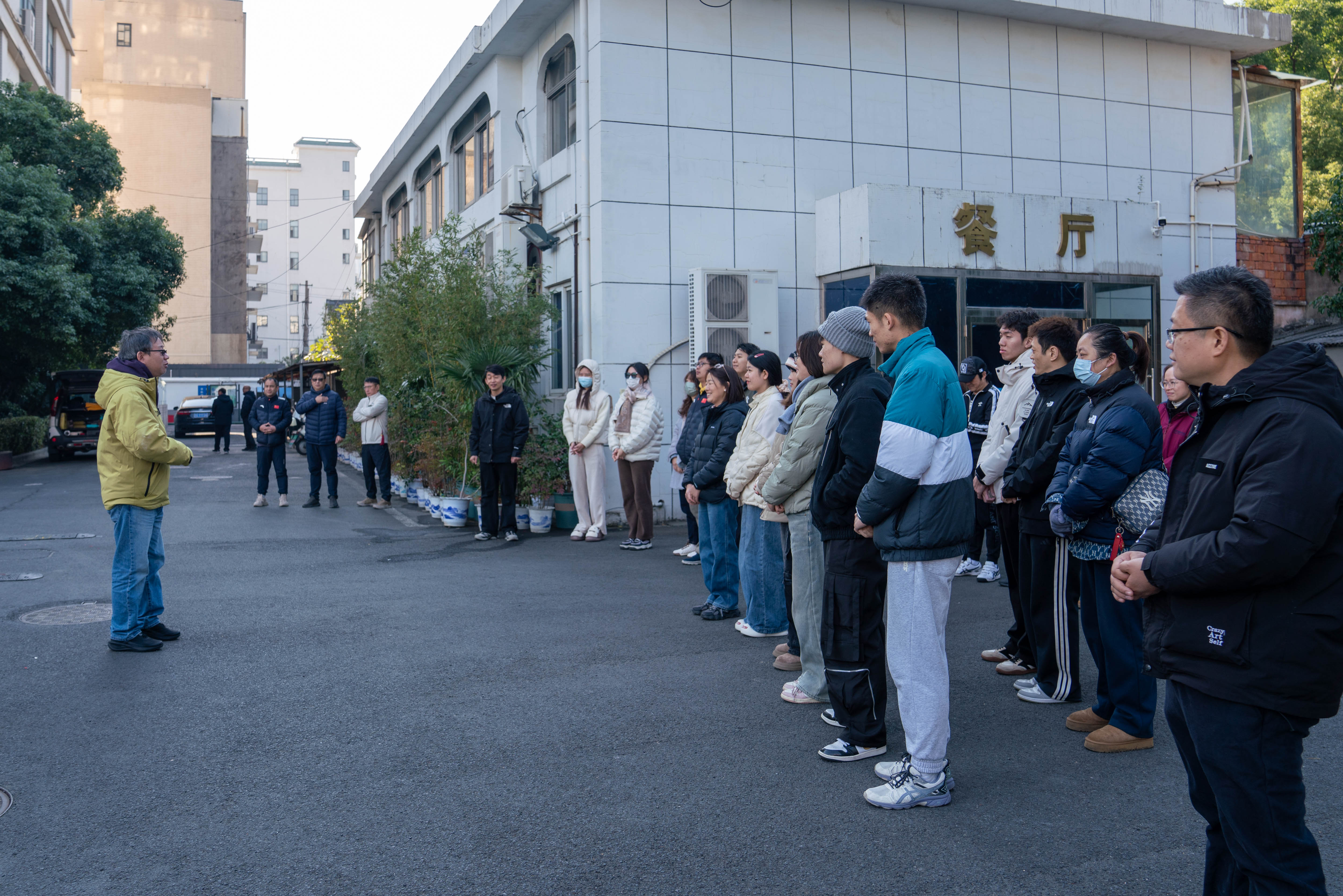 消防警铃响起。全体人员在各馆各楼层组长、副组长的引导指挥下,按照规范要求沿综合楼西侧消防逃生通道有序撤离,至指定地点集合,各馆各楼层组长清点人数并向应急指挥小组汇报。